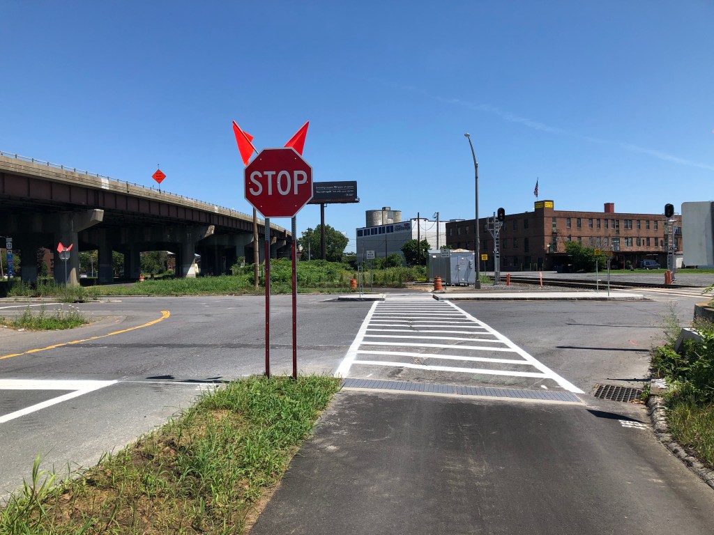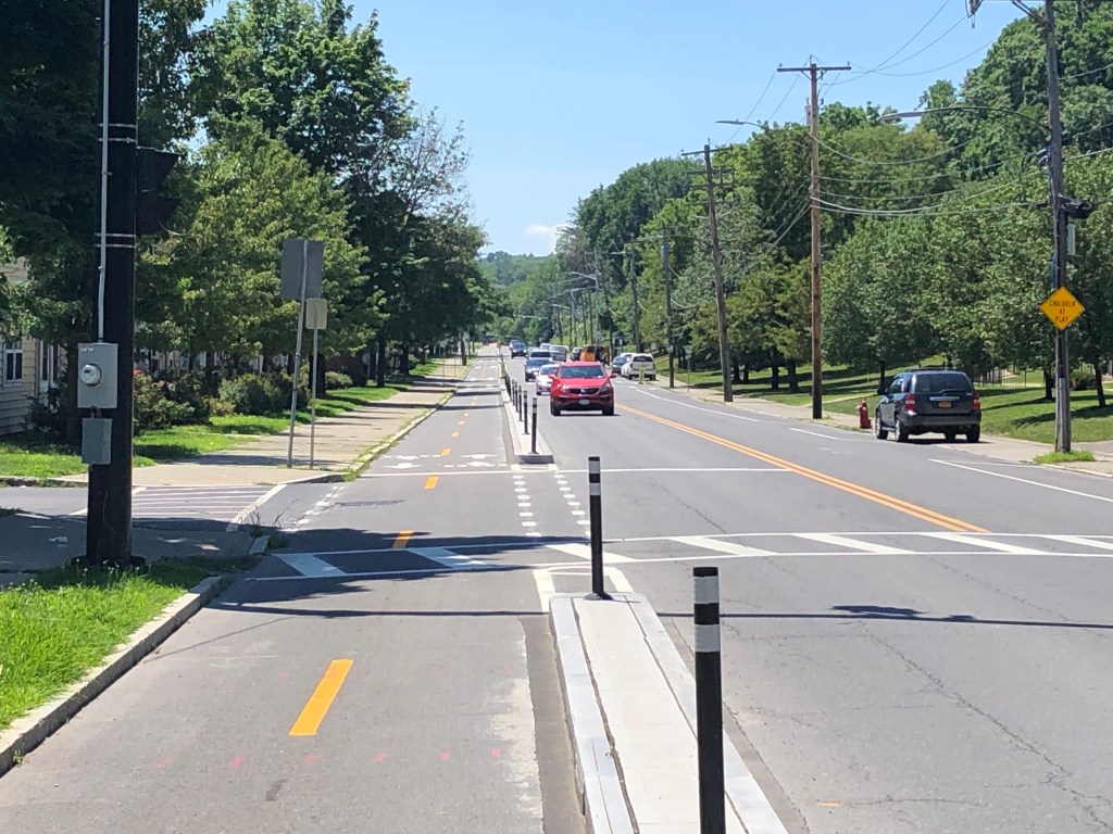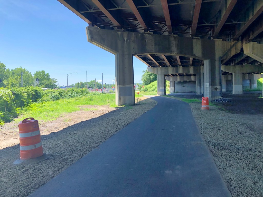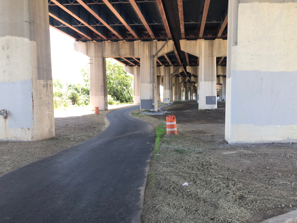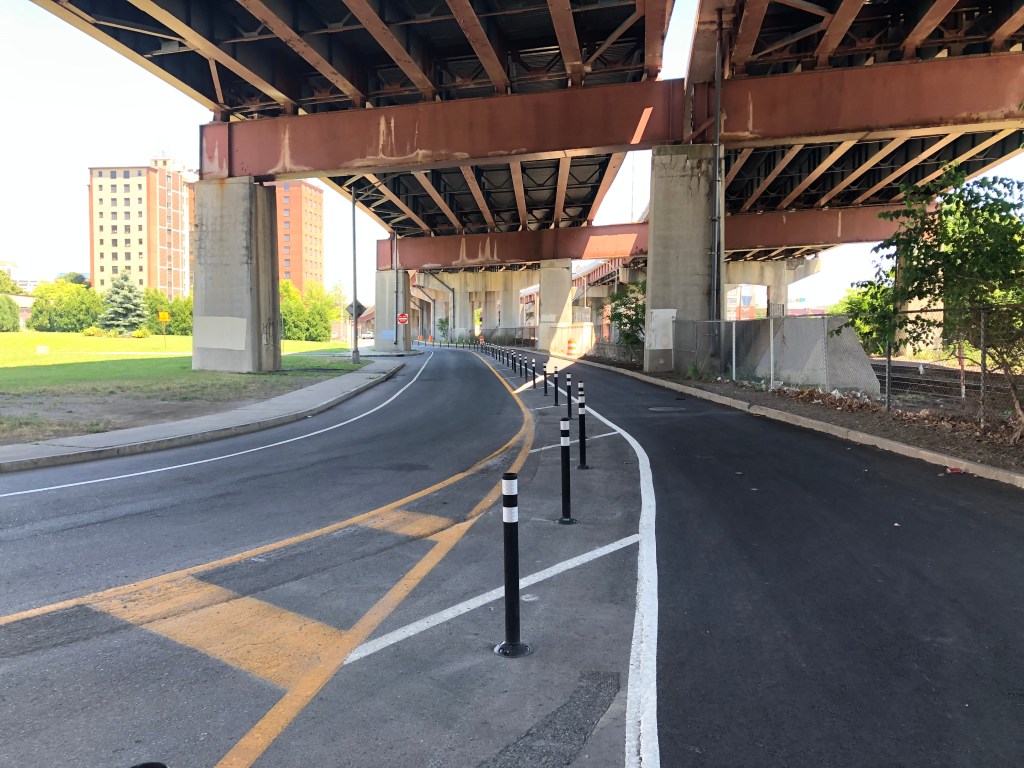 The new trail provides a seamless off-road connection between the two existing trails, running underneath Interstate 787 and on dedicated, protected lanes alongside an access road and South Pearl Street. There are also CDPHP Cycle! bike share docks located at various points along the trail – although they’re often empty, because the bikes are so popular! While the trail has an unfinished feel to it today, there plans for a Phase 2 of the project that will spruce up the highway underpass area by relying on residents and visitors to use their imaginations to propose ideas for making this area more attractive and for amenities that would make their experience more enjoyable.