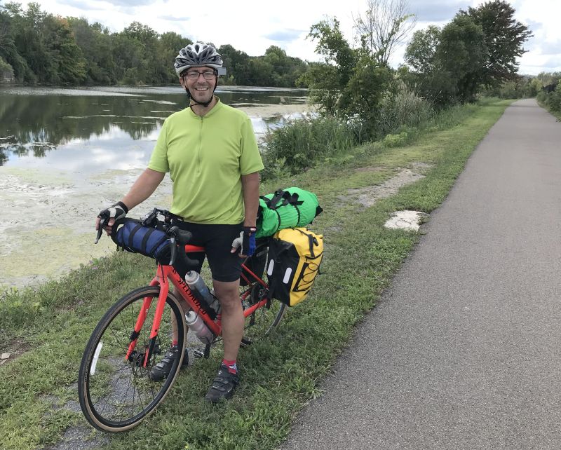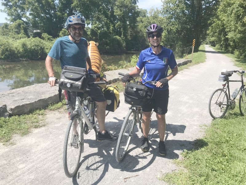 Over the years, Dave has had the pleasure of meeting so many different kinds of people while out of the trail; some travelling the Canalway in preparation for the El Camino de Santiago pilgrimage, others to participate in Cycle the Erie Canal, and most racking up the miles as part of PTNY’s End-to-End program. From Missouri and Indiana to Switzerland and Spain, the interactions that Dave has on a regular basis have led to the conclusion that “long distance cyclists or hikers are always happy to talk. In instances where they haven’t spoken with someone in miles or hours, stopping is part of the adventure for them.” Part of the allure of running into an ambassador like Dave is learning just where to stop. Dave suggests that users stop “closer to Rome, where the old historic Erie Canalway Trail meets the Barge Canal,” near Lock 21 and “watch boats from kayaks to ocean-going cruisers rise up or drop down 28 feet as they work their way west or east, ” or at the aqueduct in nearby Camillus which spans the Nine-Mile Creek and is the only restored, navigable aqueduct in New York State.