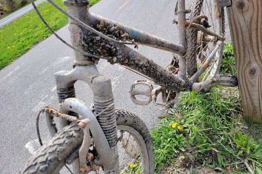 The much anticipated strangest trash treasure award goes to Glenn Gordon in Amherst, NY for finding this barnacle bike. So cool to see nature reclaiming this piece of trash. Definitely adds character to your ride!