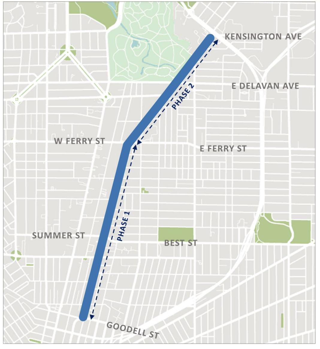 - Repaving and repairing the pothole problems between Goodell Street and Kensington Avenue, allowing for a new, safer traffic design.
