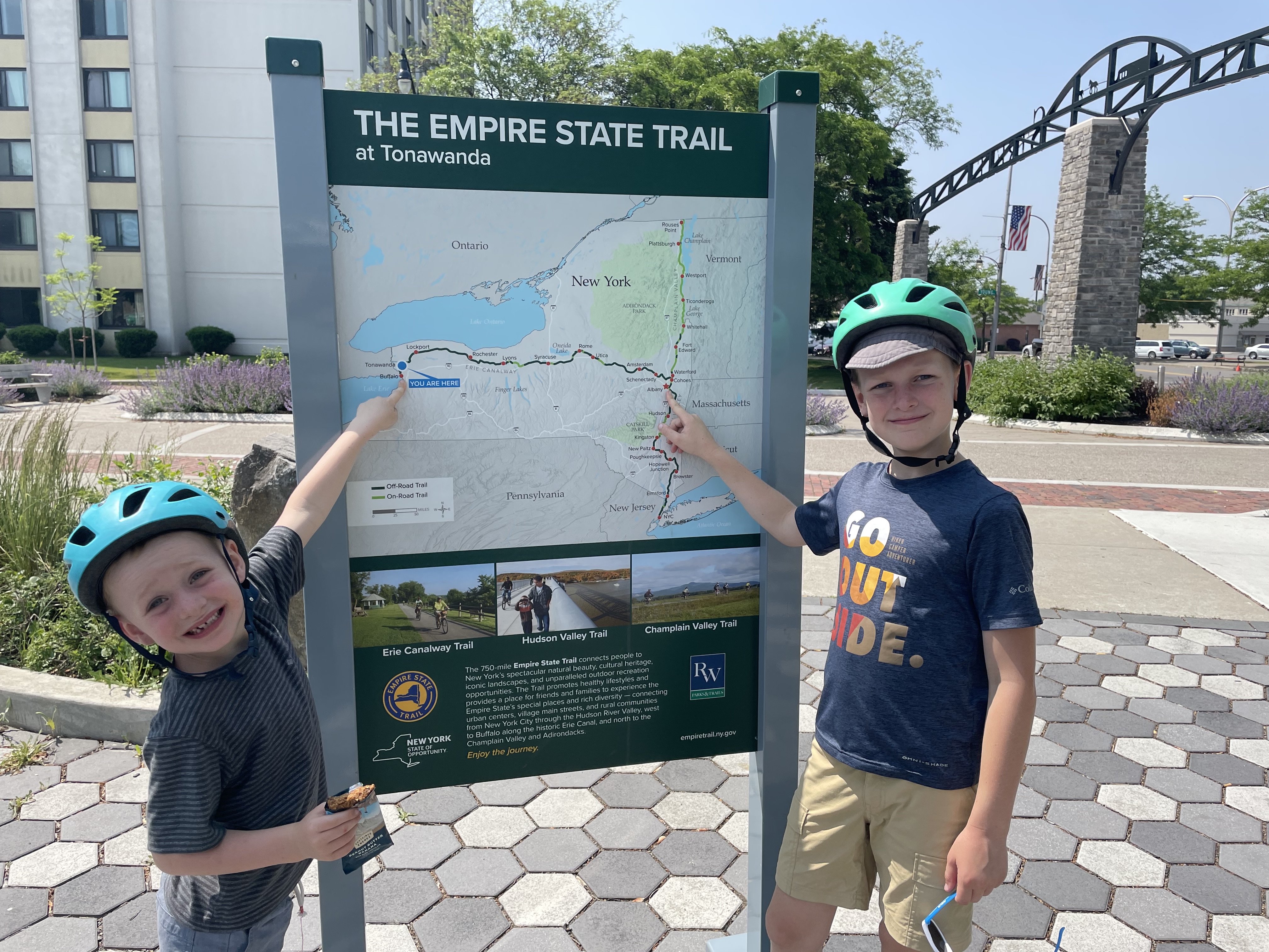Christina K., her husband and two sons, Willem (9) and Pouwel (5) from Chicago, IL go on a big bike camping trip every year. This year, they decided to tackle the Erie Canalway Trail, their biggest challenge yet! In early June, they rode from Buffalo to Albany, taking seven days to cover the 360-mile long trail.